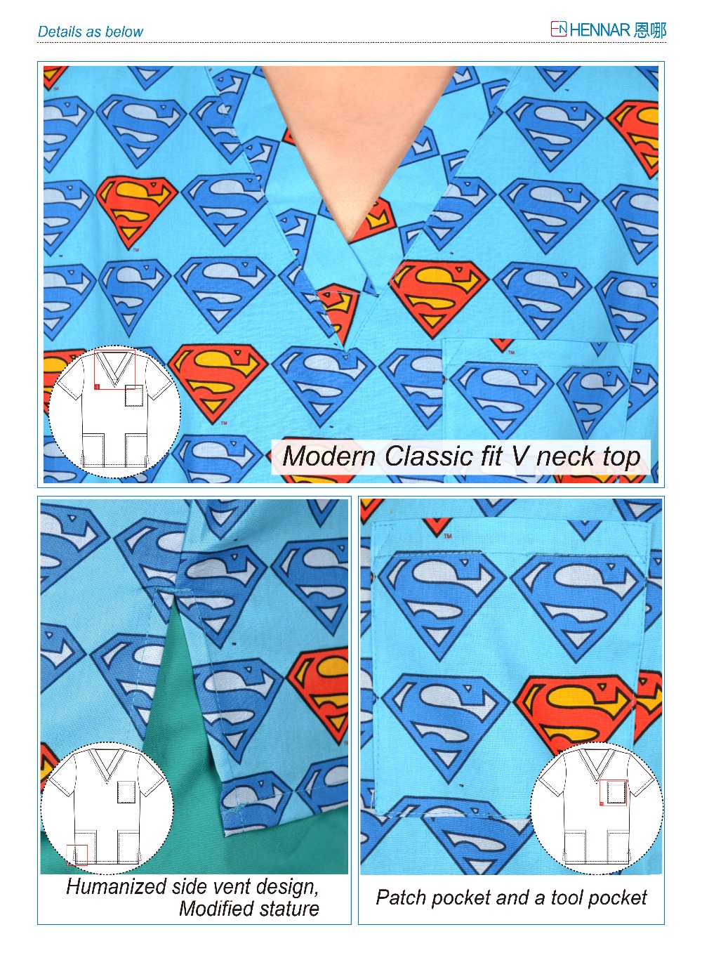 Men Medical Uniforms,Camouflage Colour Scrub Tops in 100% Cotton
